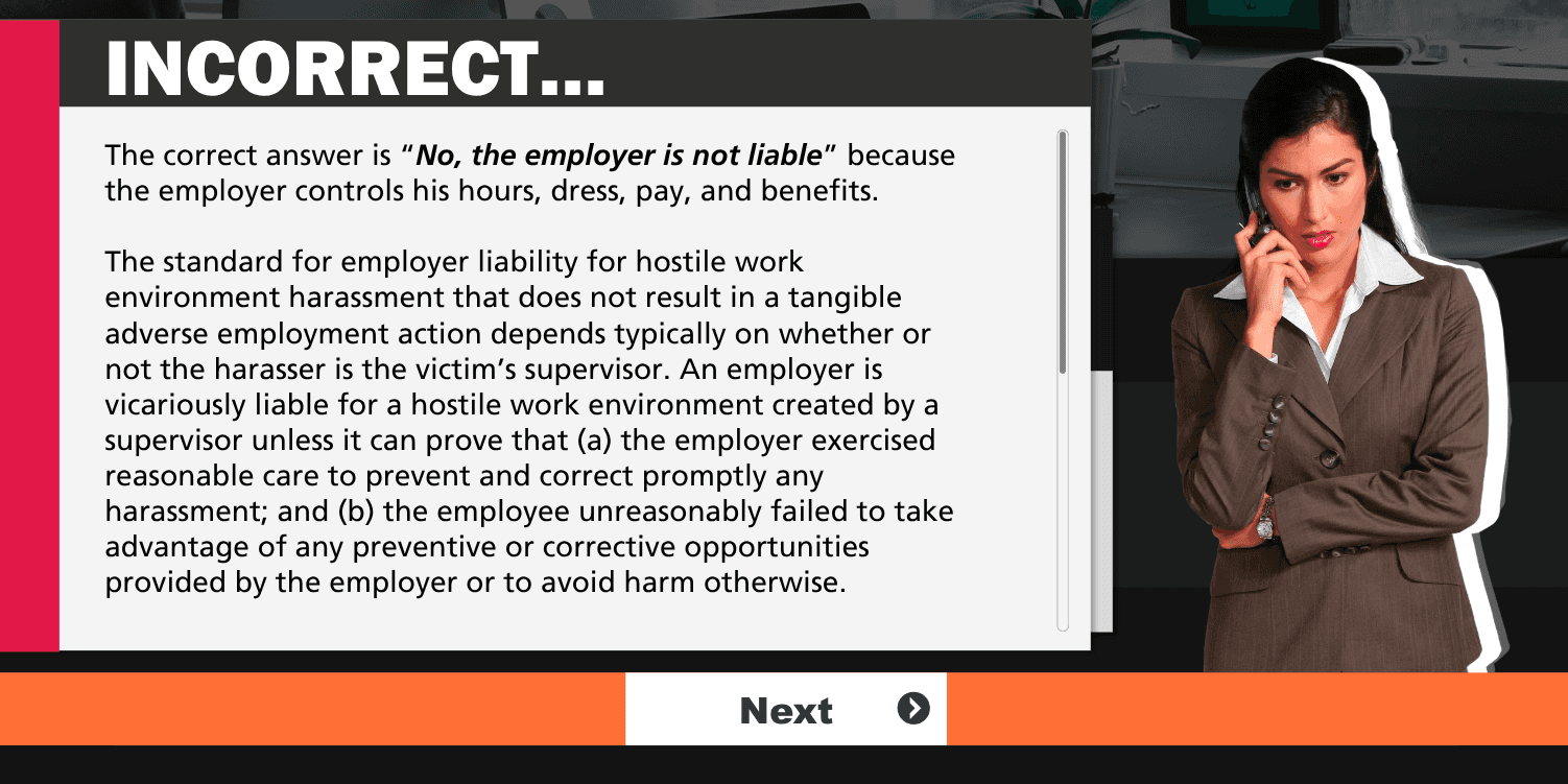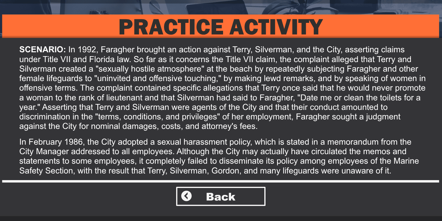 HR Course covering prevention, response, remediation and FAQ's pertaining to workplace sexual harassment with an emphasis on compliant policy design, trauma-informed investigation practices, and creating inclusive, safe workplaces. The scope of the project required tactful use of the subject matter, therefore it was designed to be clear and accessible regardless of age barrier.